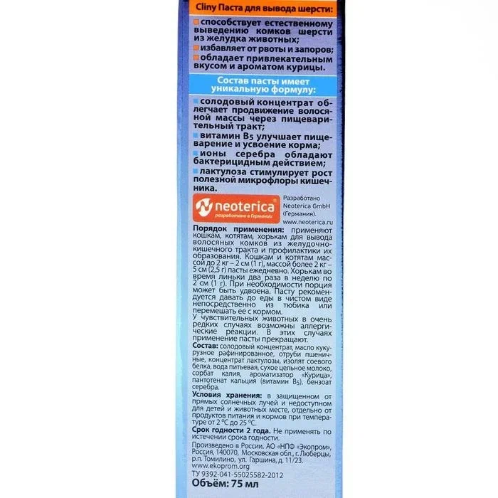 Clinу- паста для вывода шерсти . Вкусы в ассортименте.