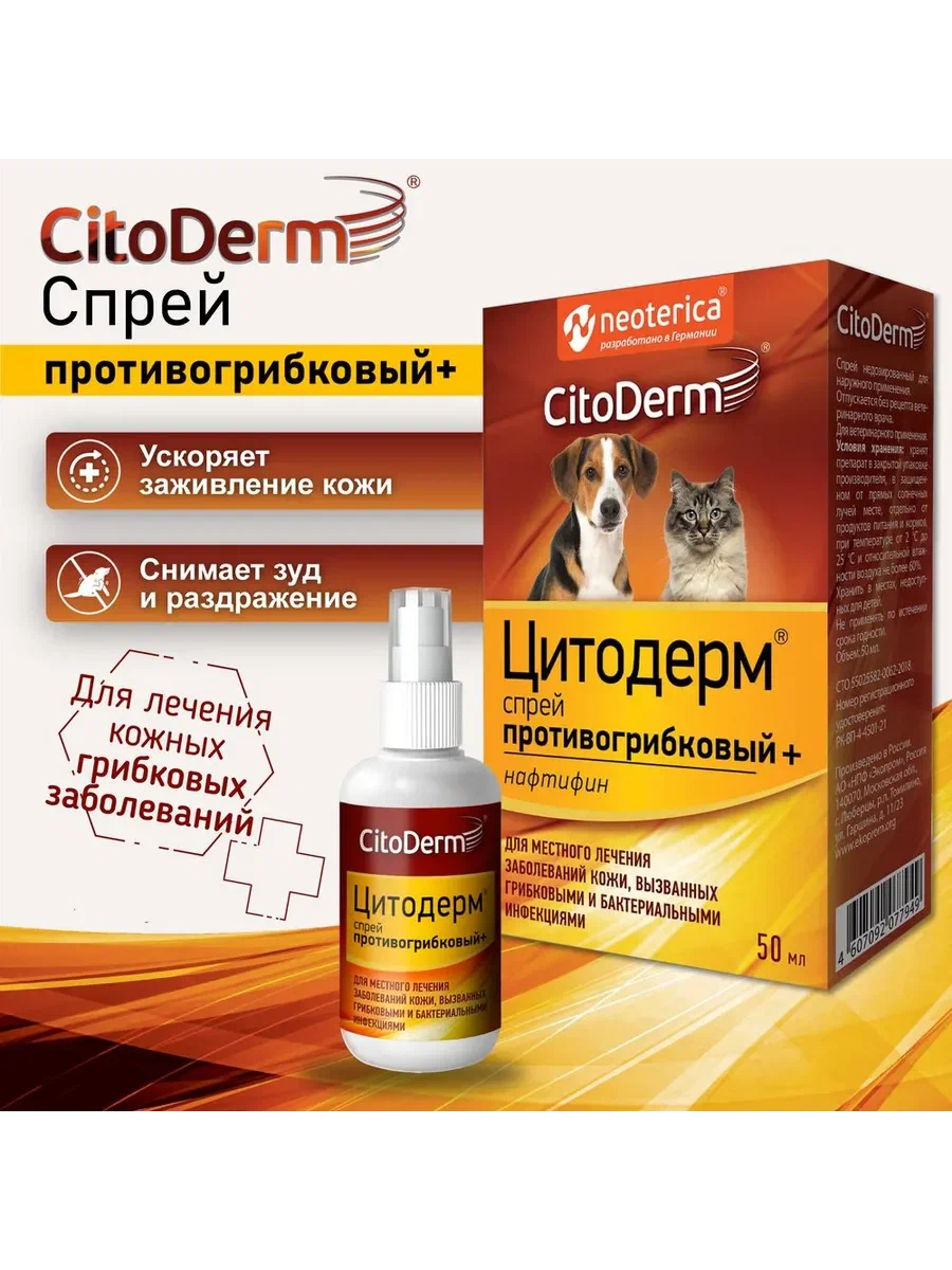 Спрей-для кошек и собак. Для местного лечения заболеваний кожи ,вызванных грибковыми и бактериальными инфекциями. 50 мл.