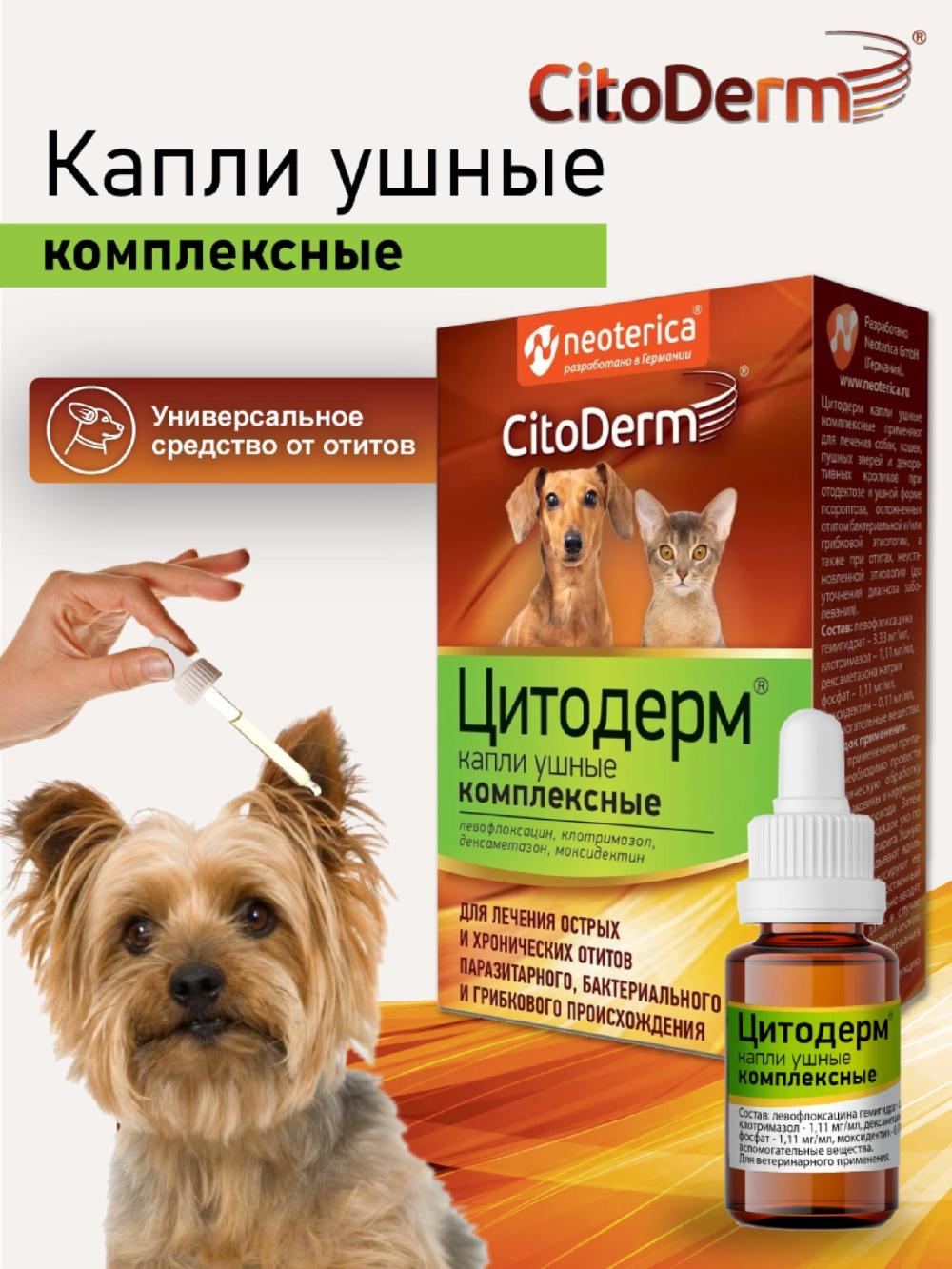 Капли-для кошек и собак. В составе левофлоксацин , клотримазол, дексаметазон, моксидектин. Для лечения острых и хронических отитов паразитарного, бактериального и грибкового происхождения. 10мл.