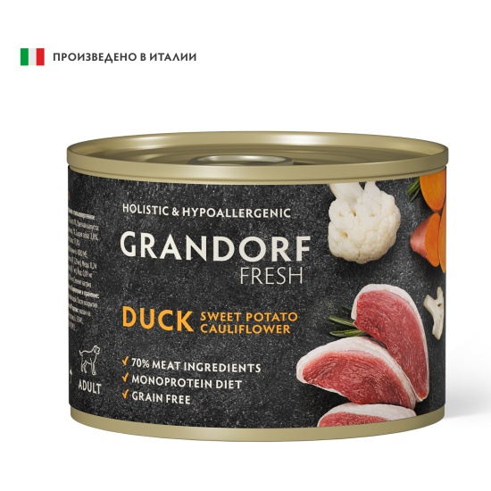GRANDORF FRESH - беззерновой холистик корм с живыми пробиотиками для кошек и собак, созданный на основе свежего мяса, с овощами, фруктами и ягодами. Без зерна, глютена, субпродуктов и курицы.