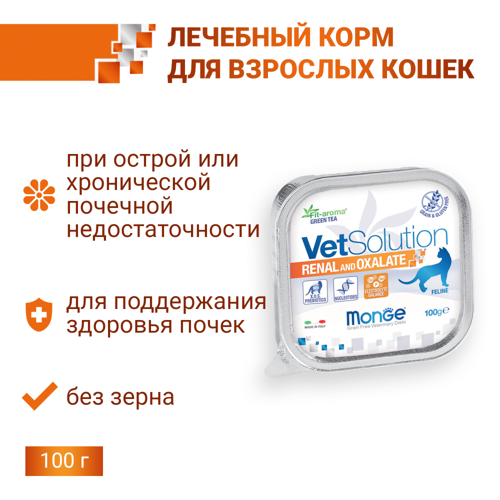 Monge Vet Solution Cat Renal and Oxalate Ветеринарная диета для кошек при ХПН и профилактике образования оксалатов