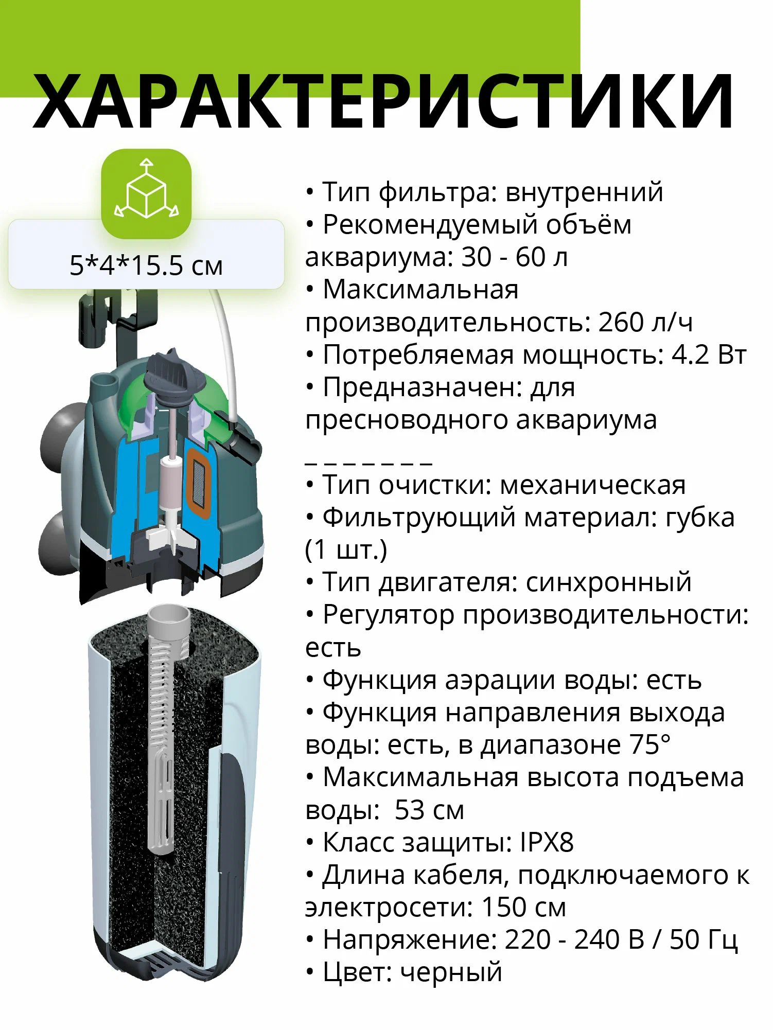 Внутренний фильтр FAN предназначен для очищения и аэрации воды в аквариумах. Благодаря старательно подобранной губке, расположенной на перфорированном стержне, он устойчив к загрязнениям и не требует частой очистки.