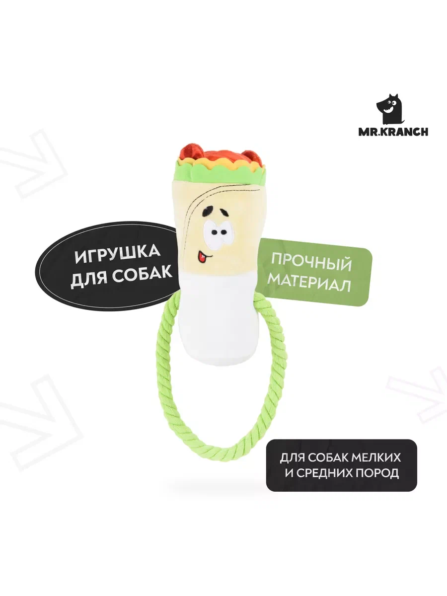 Игрушка д/соб Mr Kranch Шаурма плюшевая с канатиками и пищ 21см