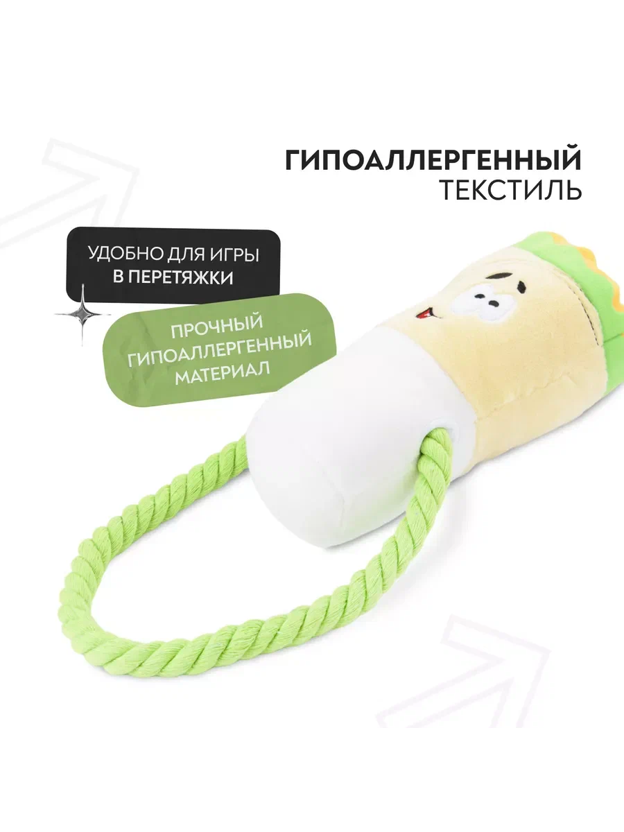 Уникальное сочетание высокопрочных гипоаллергенных материалов и стильного дизайна. Для привлечения большего интереса питомца, спрячьте любимые лакомства или корм в складки игрушки. 100% натуральный хлопковый канат способствует удалению мягкого зубного налета.