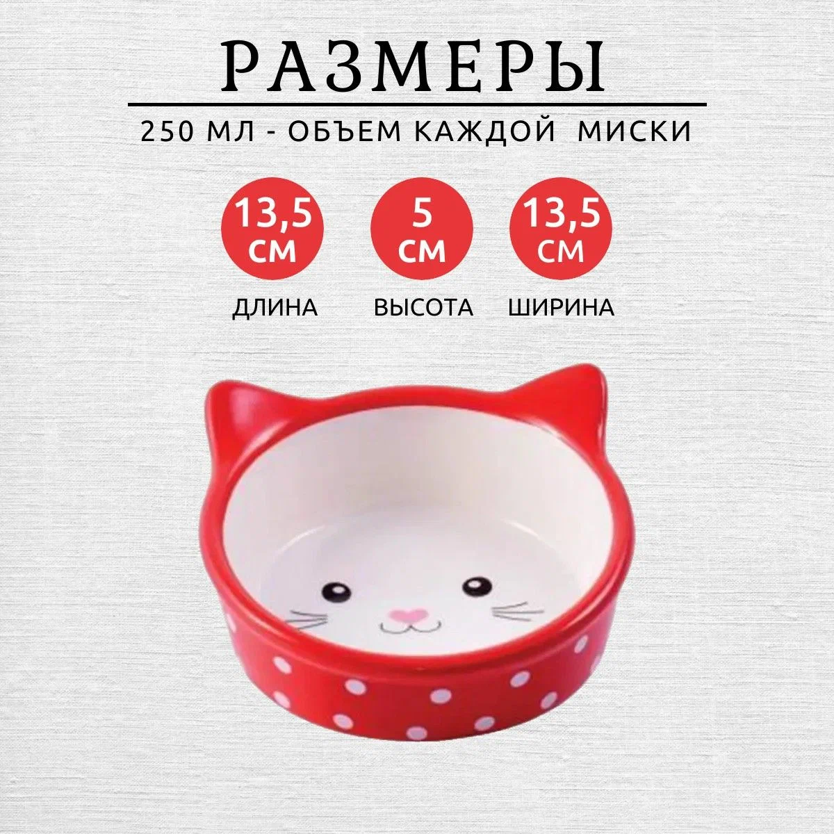 Миска д/кош Mr Kranch 250мл керам Мордочка кошки красная в горошек