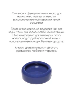 Стильная и функциональная миска для мелких животных выполнена из высококачественной керамики яркой расцветки.