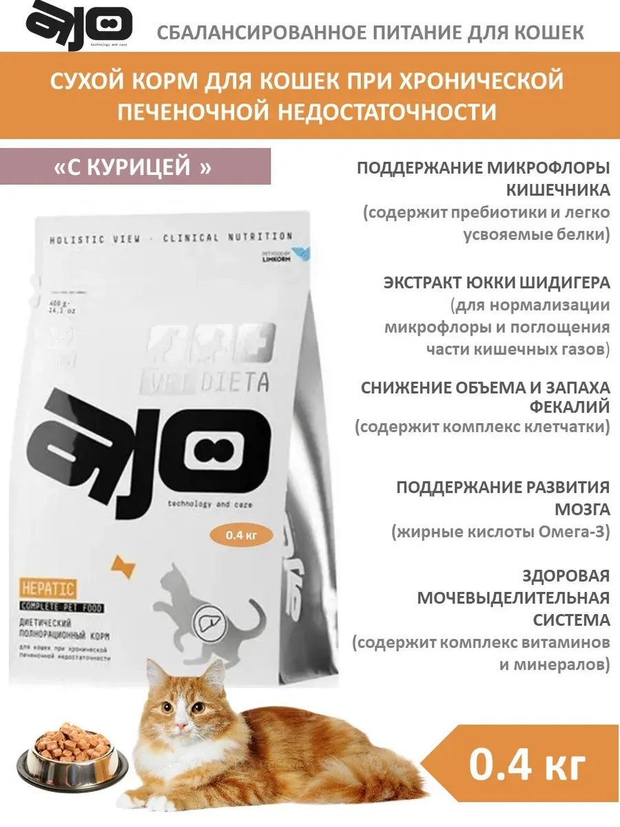 AJO Vet Dieta сух д/кош 0,4 Hepatic хронич печеночная недостаточность