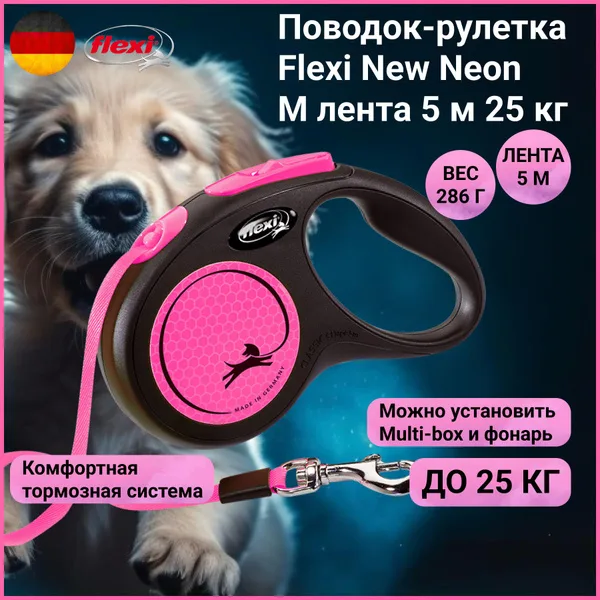 Рулетка FLEXI New Neon M до 25кг лента 5м