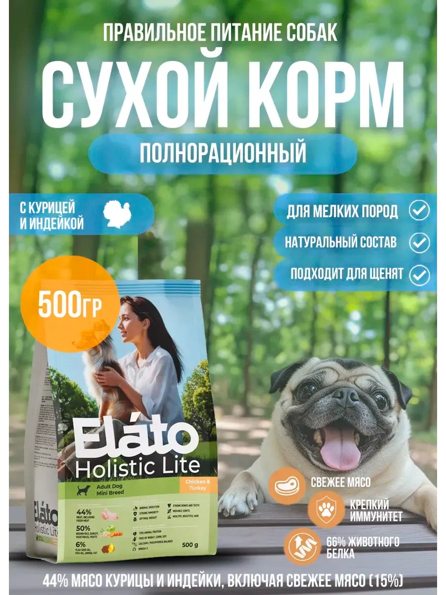 Elato Holistic Lite сух д/соб 0,500 д/мелк пор Курица/индейка