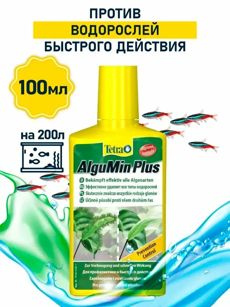 Средство Tetra AlguMin быстро удаляет все типы водорослей и эффективно препятствует их дальнейшему разрастанию.