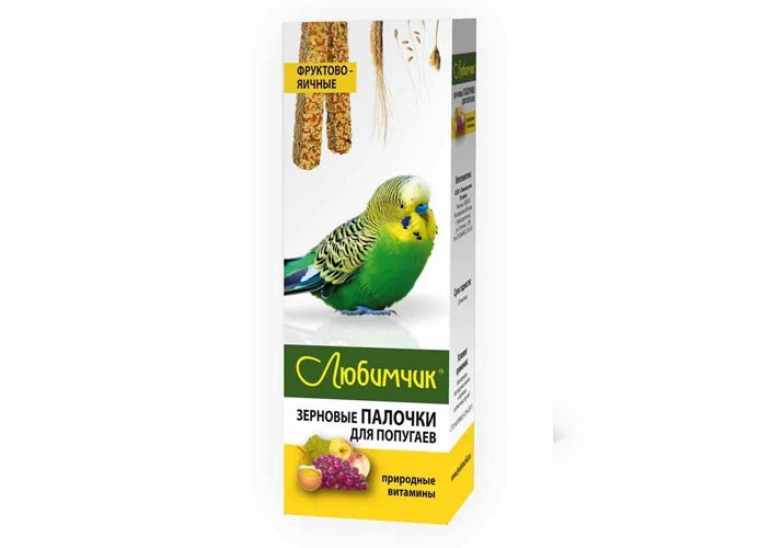 Любимчик Палочки «Фруктово-яичное лакомство» для волнистых попугаев. Полезное лакомство для декоративных птиц. СОСТАВ: просо, овес, подсолнечник, канареечное семя, семя льна, пшеница, яйцо, фрукты.