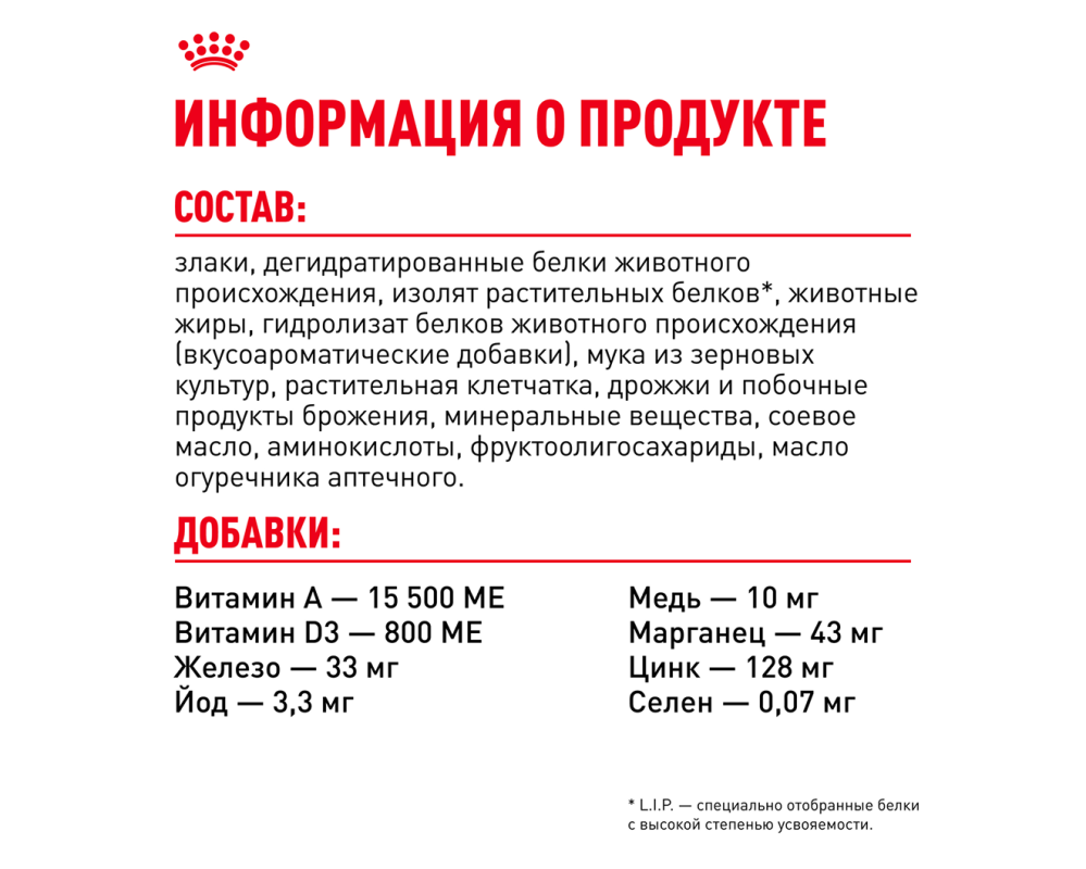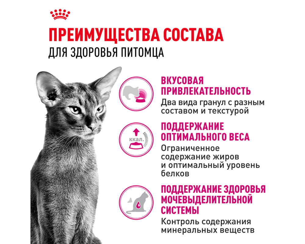 Рацион отличается адаптированной калорийностью и оптимальным количеством жиров, что помогает поддерживать идеальный вес вашей кошки.