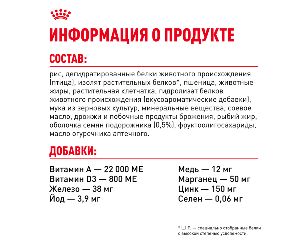 Содержащиеся в рационе пребиотики (ФОС и МОС), высококачественные белки L.I.P.*, семена подорожника и клиноптилолит осадочного происхождения поддерживают оптимальное пищеварение.