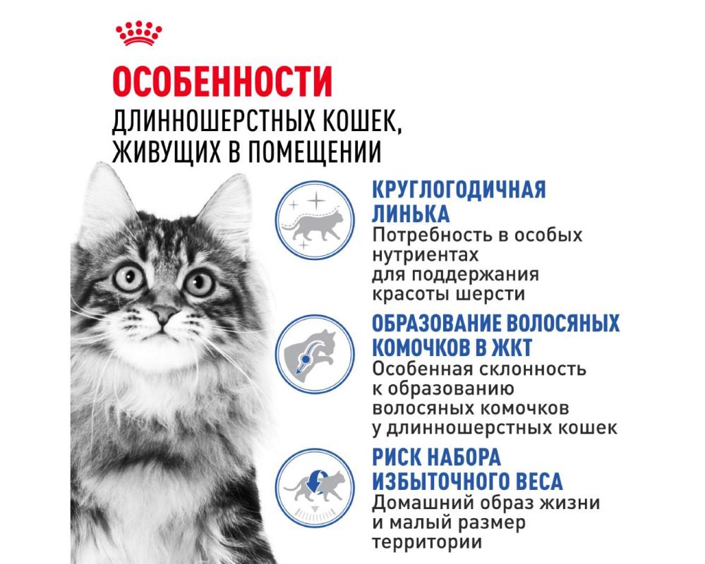 Royal Canin Indoor Long Hair Корм сухой сбалансированный для взрослых длинношерстных кошек, живущих в помещении (2кг + 400г)