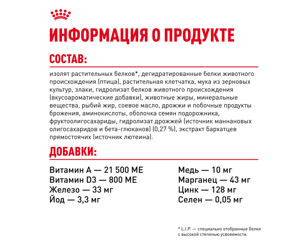 Формула ROYAL CANIN® Kitten Sterilised способствует здоровому росту и контролю веса котят, поддерживает иммунитет, баланс микрофлоры кишечника и развитие мозга. Содержащиеся в рационе пребиотики (ФОС и МОС) и высококачественные белки L.I.P.* легко усваиваются, что поддерживает оптимальное пищеварение и позволяет котятам эффективно усваивать питательные вещества.