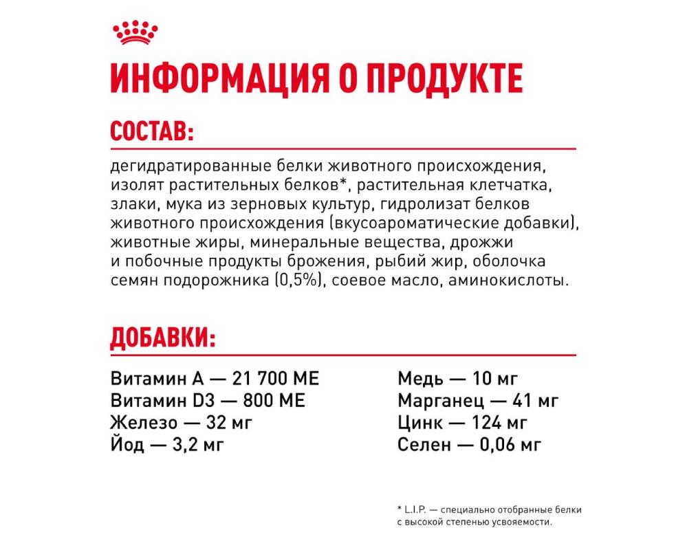 Ингредиенты: животные белки, L.I.P.*, злаки, рыбий жир, подорожник (0,5%).