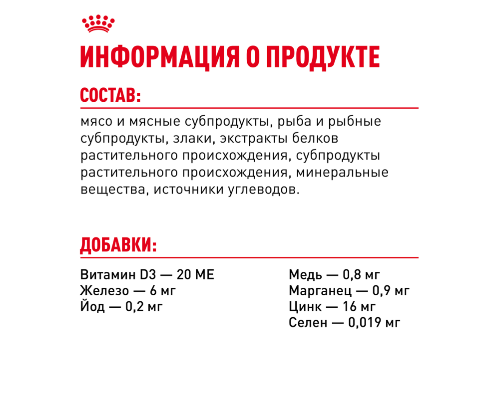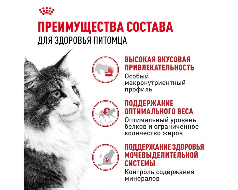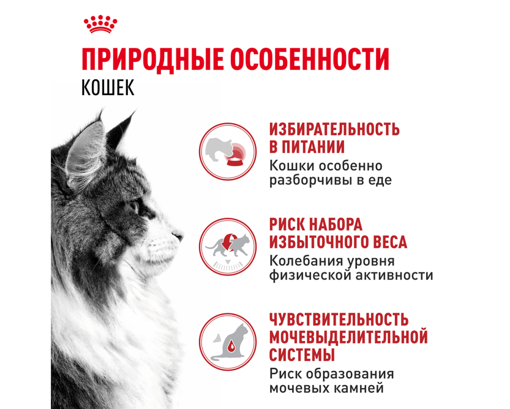 Формула ROYAL CANIN® Instinctive поддерживает оптимальный вес и здоровье мочевыделительной системы, а также соответствует инстинктивным предпочтениям животных. Корм содержит ограниченное количество жиров и оптимальный уровень белков, что помогает поддерживать идеальный вес.